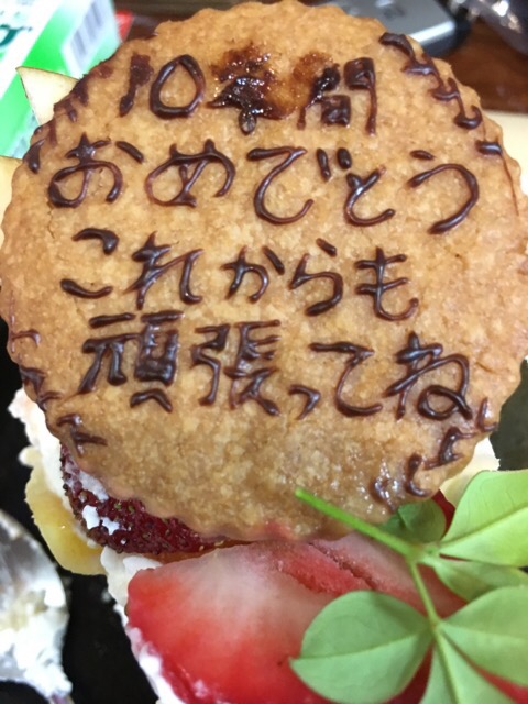 常連S様よりメッセージ入りケ-キを頂きました