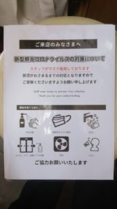 来店時の手指消毒もお願いします。